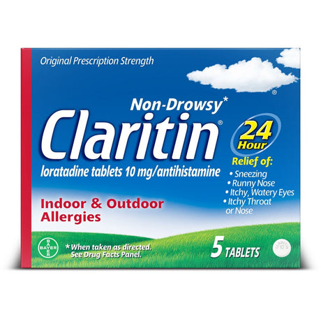 Claritin 24HR Non-Drowsy Allergy Relief Tablets, Loratadine 10mg, 5 Count Pack - Multi-Symptom Rel