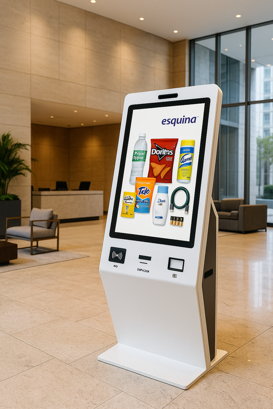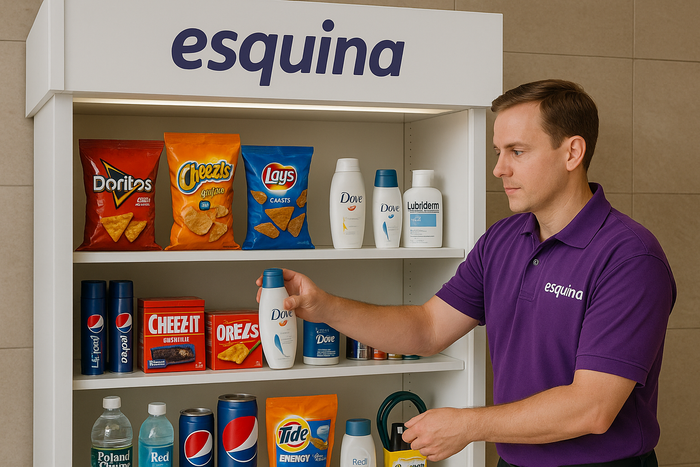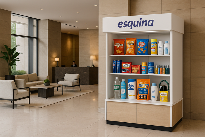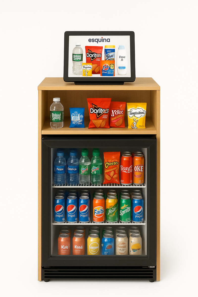 The Esquina installs and manages beautifully organized micro-convenience kiosks inside residential buildings. Zero cost to the landlord. Fast restocks. No headaches.
