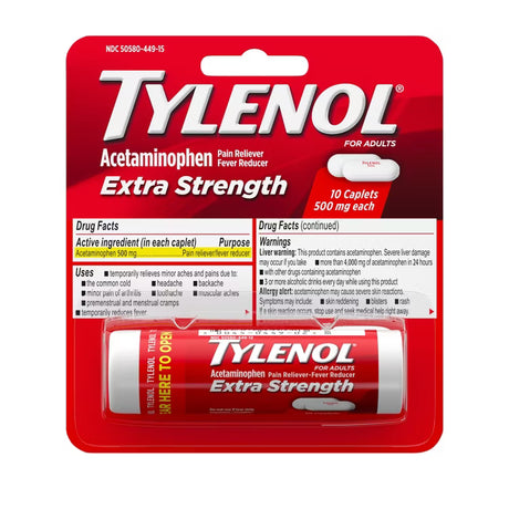 Tylenol Extra Strength Pain Reliever & Fever Reducer Caplets, Acetaminophen (500mg), 10 Count